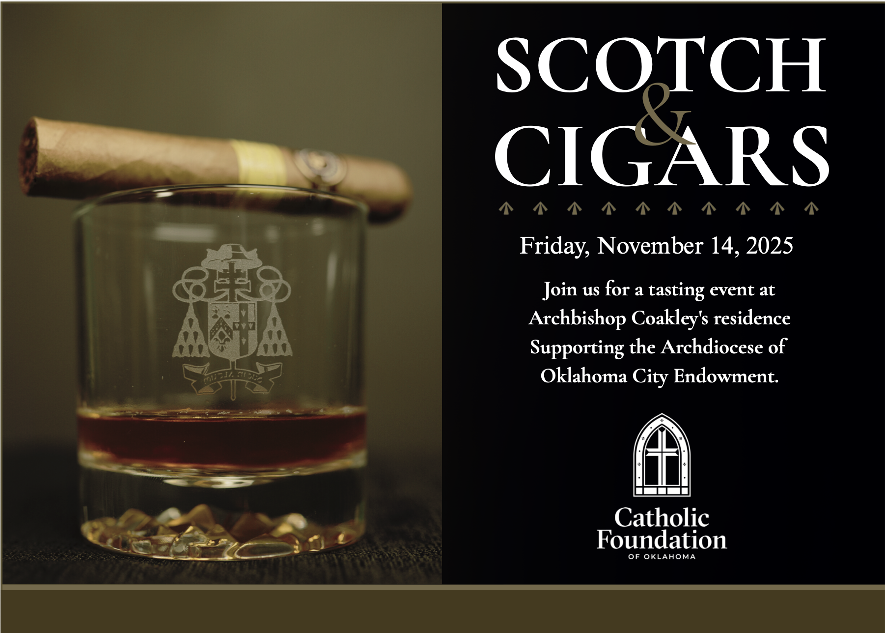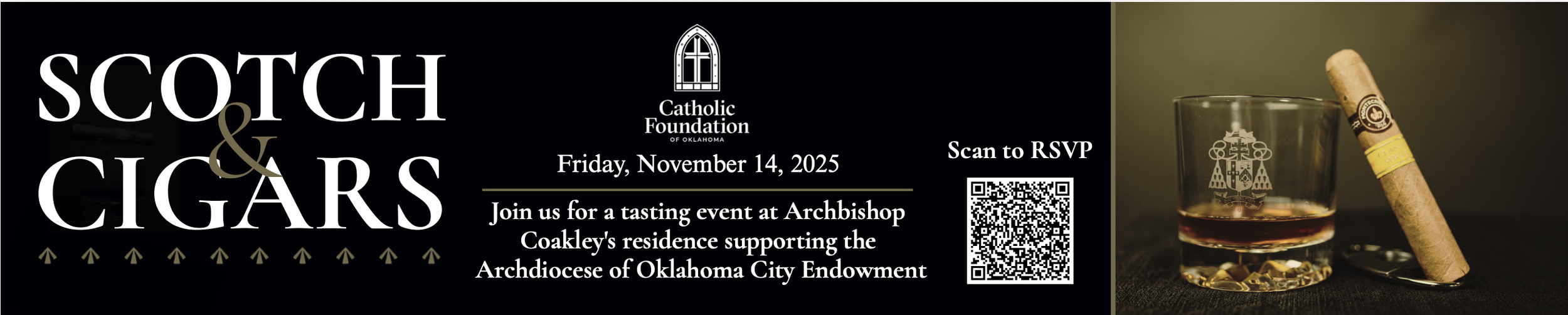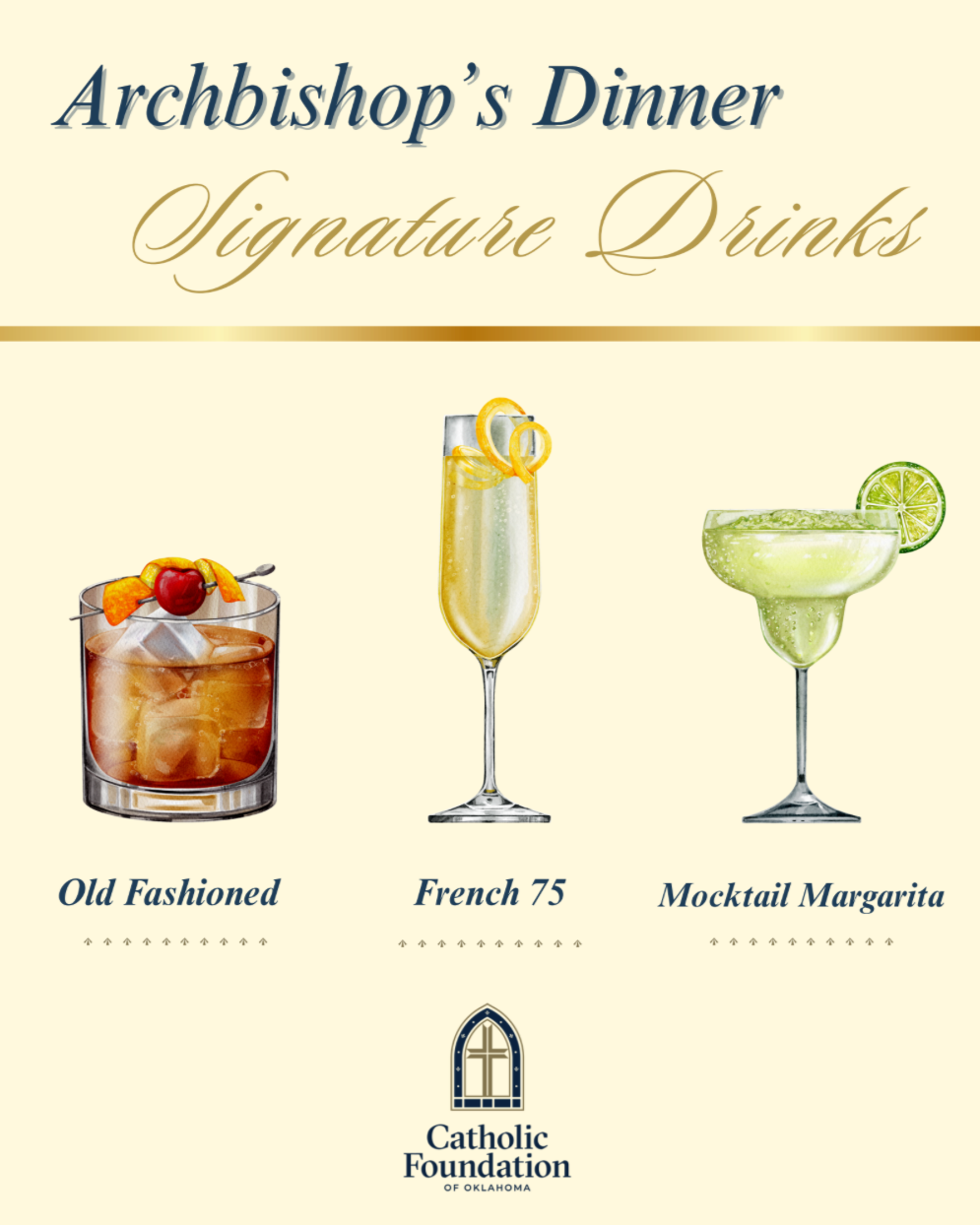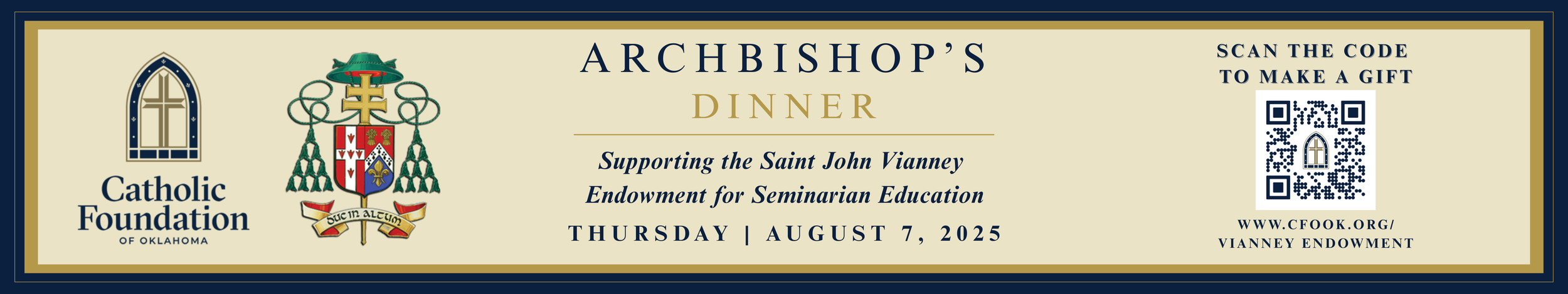 These four design pieces were developed as part of a cohesive visual campaign for the Archbishop's Dinner, the most prestigious annual event hosted by the Catholic Foundation of Oklahoma City. This formal charity taking place at the National Cowboy Hall of Fame, event brings together donors and community members to raise funds in support of seminarians’ educational expenses, as well as to provide resources for their ongoing formation throughout the year. Each piece was carefully curated to maintain a consistent and elevated brand identity that reflected the significance and tone of the occasion. Through the development of these materials, I gained valuable experience in creating unified branding across multiple deliverables while working within an established organizational identity. This project was completed during my internship with the Archdiocese of Oklahoma City, where I further strengthened my skills in event branding, visual communication, and design strategy.